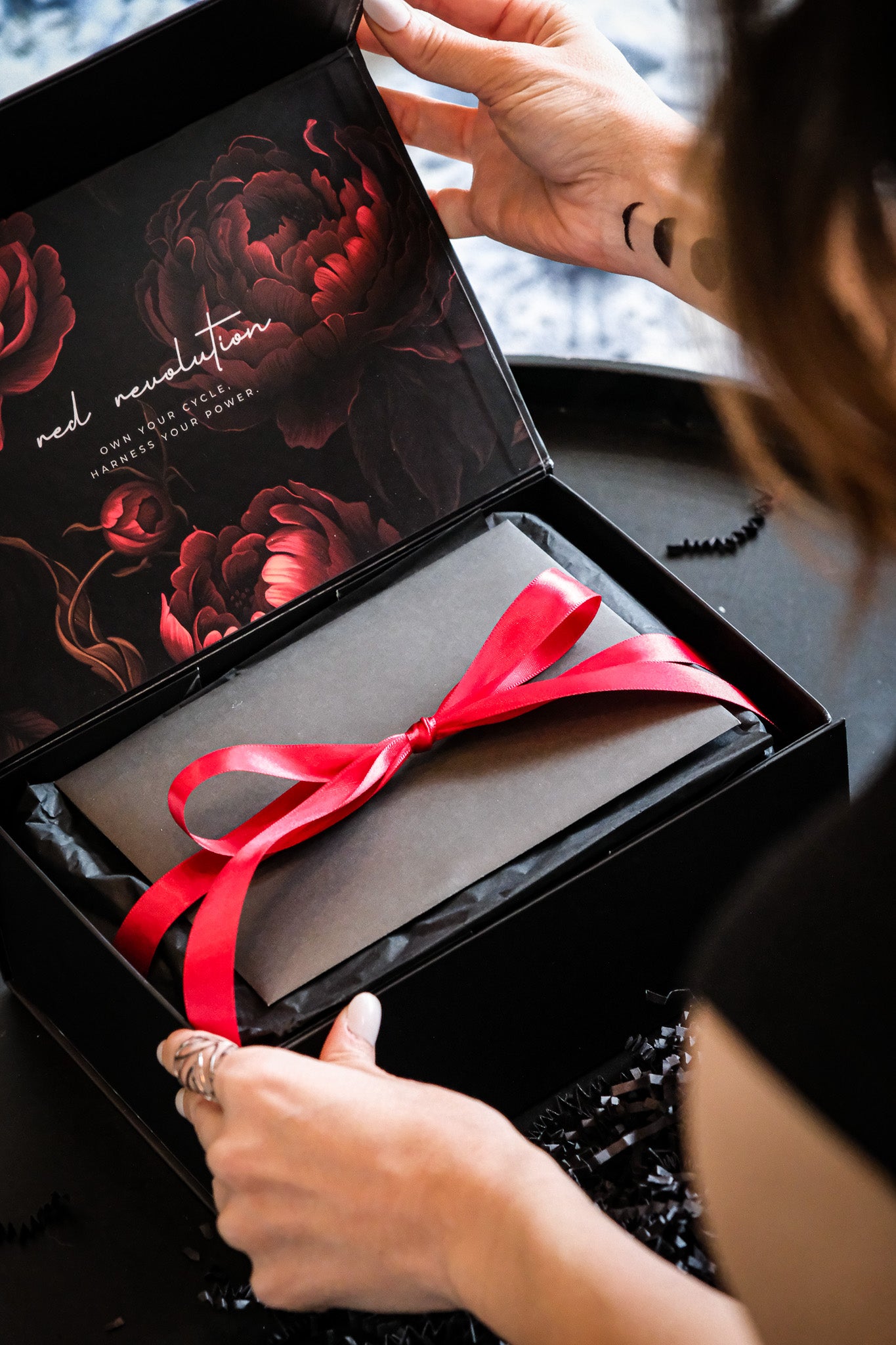 Establish Rituals: Repetition is key to building strong neural pathways. Each month, your box will contain tools and guidance to create consistent rituals of empowerment, reflection, and cycle awareness.